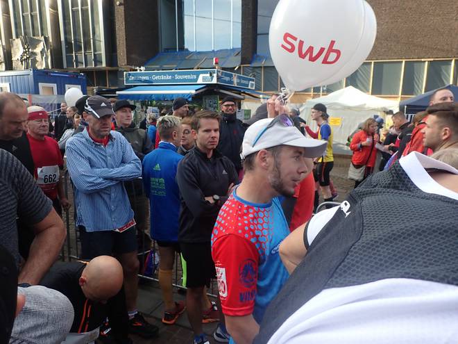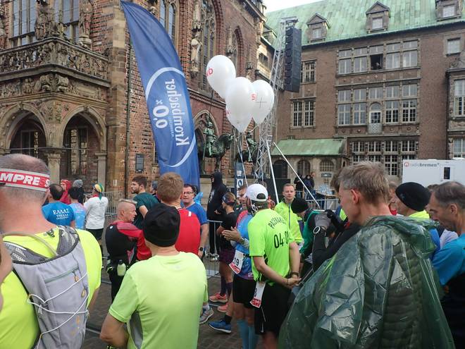 Am Markt 9.28 Uhr Ich sortierte mich zunächst bei den 4:00-Stunden-Ballons ein. Vielleicht könnte ich mich von denen ein wenig ziehen lassen. Versuchen konnte ich es ja. |