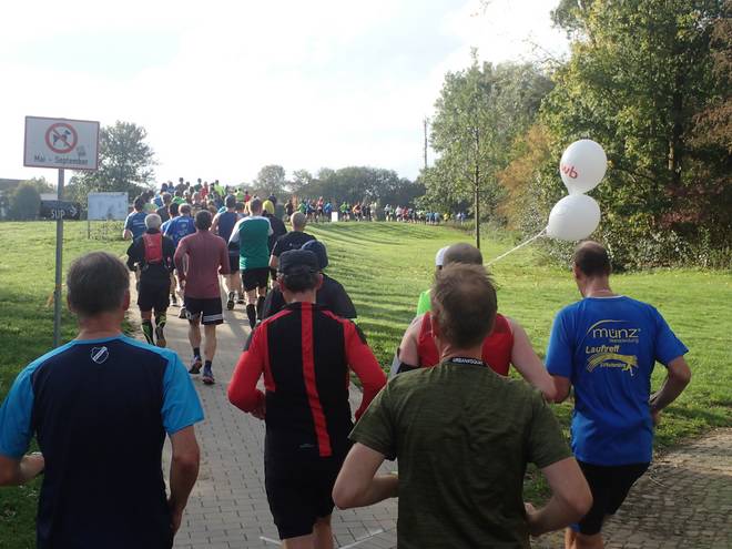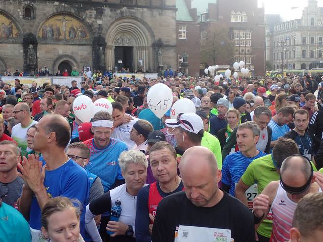 Am Markt 9.26 Uhr Jede Menge gute Bekannte waren wieder mit dabei. Toni startete als 3:45-Stunden-Ballon-Läufer. Das war an dem Tag klar zu schnell für mich. |