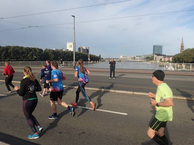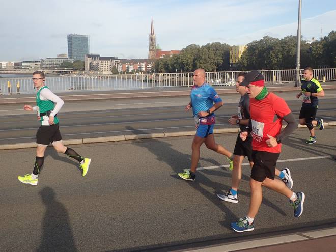 Bürgermeister-Smidt-Brücke 9.50 Uhr / Km 3,2 Es ging über die Weser. |