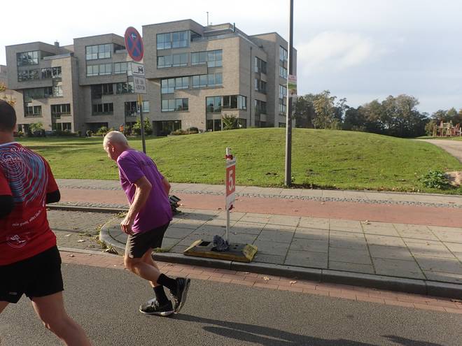 Harstedter Osterdeich 10.51 Uhr / Km 14,3 Kilometer 14 passierte ich mit knapp mehr als 1:19 Stunden. Ich lag also ziemlich genau auf Kurs vier Stunden. |