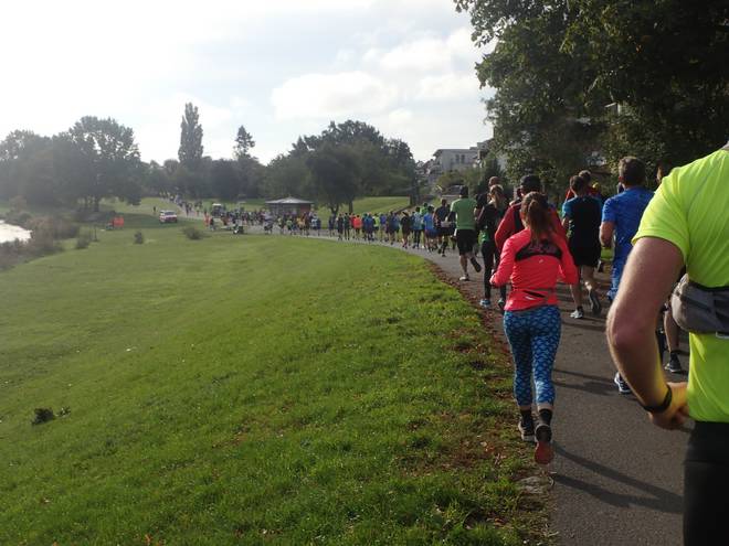 Am Werdersee 10.15 Uhr / Km 7,7 Dieses Laufen im dichten Pulk gefiel mir gar nicht. |