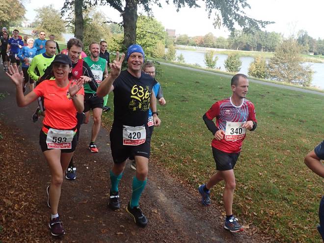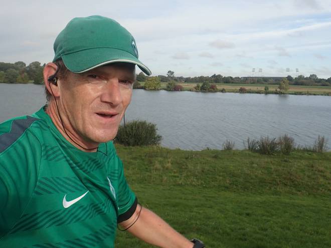 Am Werdersee 10.25 Uhr / Km 9,6 Mir war es nur wichtig, etwas Platz für mein Selfie mit dem Weserstadion im Hintergrund zu haben. Da käme ich ja noch bei Kilometer 38,3 durch. |