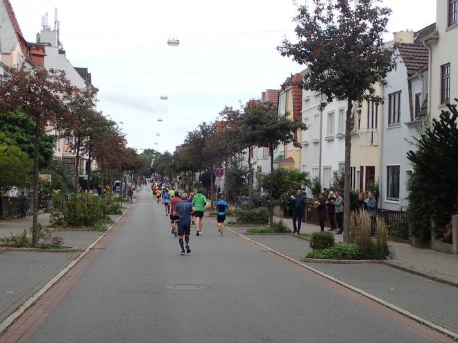 Werderstraße 9.59 Uhr / Km 5,0 27:48 Minuten für die ersten fünf Kilometer. Dem Tempo hatten die vielen Fotos nicht geschadet. Wie sich herausstellte war ich nicht zu langsam, sondern die 4:00-Stunden-Läufer zu schnell unterwegs. |