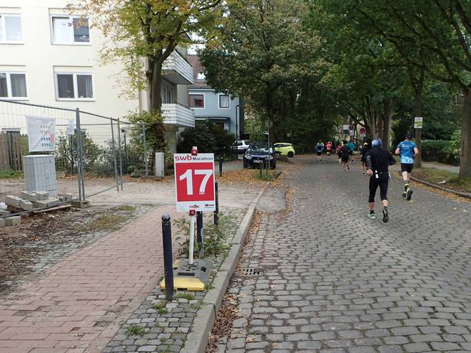Schwachhauser Heerstraße 11.21 Uhr / Km 20,0 26:03 Minuten für die vierten fünf Kilometer. Weltklasse. Aber es ist bekannt, der hier etwas mit den Kilometern nicht hinkommt. Das holt man bis Kilometer 25 wieder auf. |