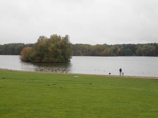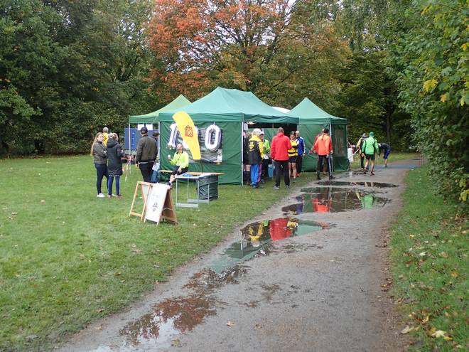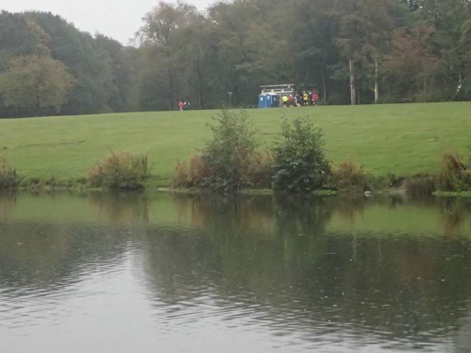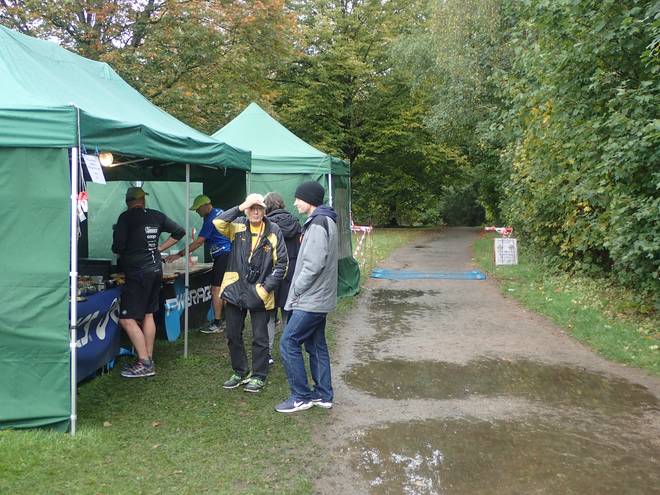 Öjendorfer See 8.52 Uhr Leider spielte das Wetter bei diesem Jubiläum nicht mit. Es regnete ohne Ende. Immerhin war es bei 12° bis 14°C nicht allzu kalt und viel Wind war auch nicht. |