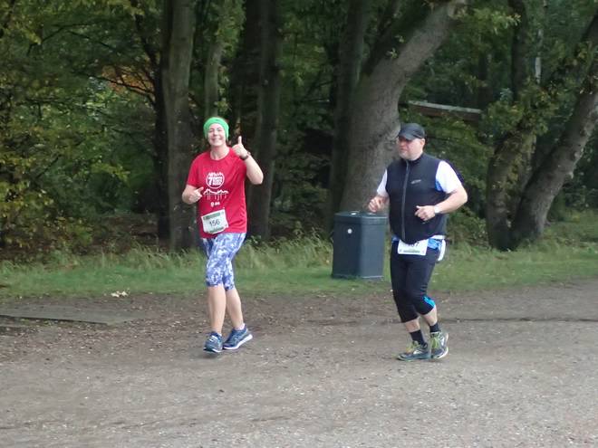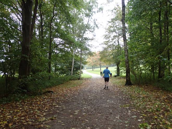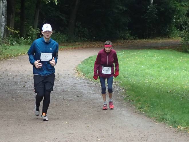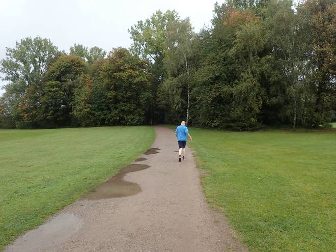 2. Runde 9.40 Uhr / Km 6,1 Oder auch nicht. Man lief halt hinter mir. Der Läufer in Blau hing schon eine ganze Runde knapp hinter mir. Foto: Charlotte |