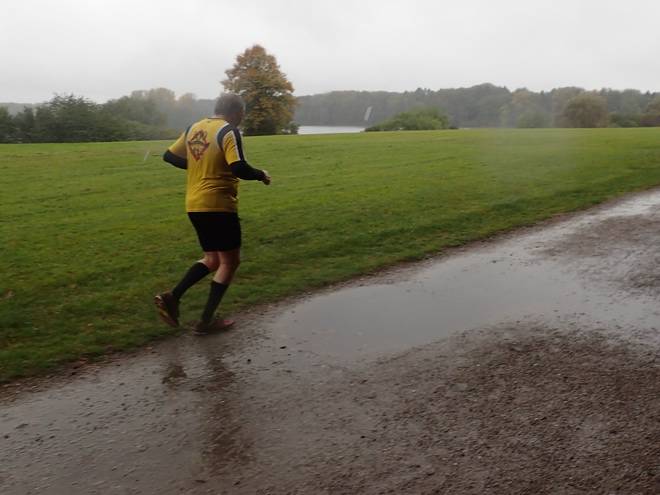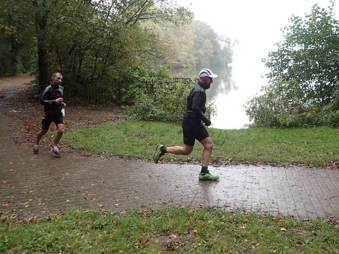 1. Runde 9.25 Uhr / Km 3,5 Dank des Dauerregens gab es reichlich Pfützen. Wobei das auch schlimmer war. |