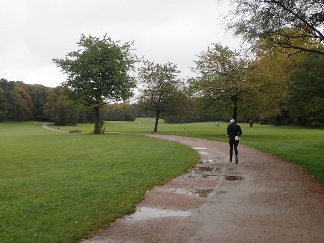2. Runde 9.35 Uhr / Km 5,3 Trotz der 73 Läufer auf der Runde war ich früh ziemlich alleine. |