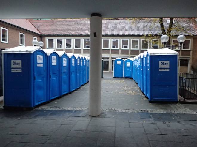 Markt 9.18 Uhr Die Ausschilderung war soweit gut, aber die Gepäckausgabe im Einkaufszentrum abseits vom Markt hätte noch ein bis zwei weitere Schilder gedurft. Aber die Dixis waren jetzt geöffnet. |