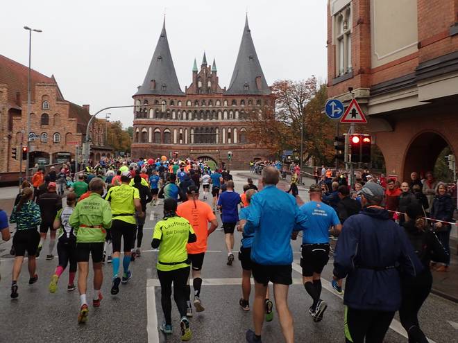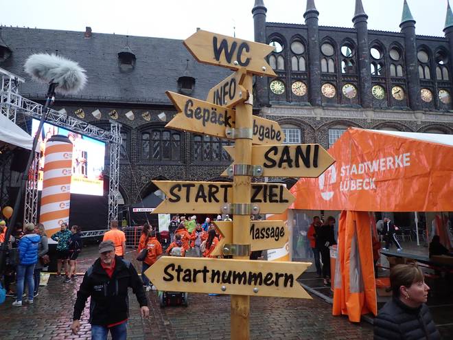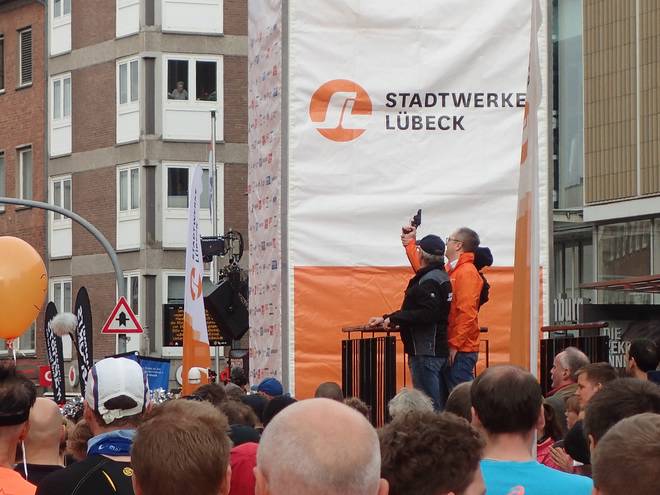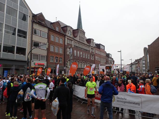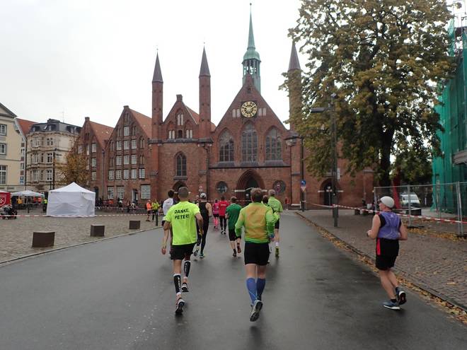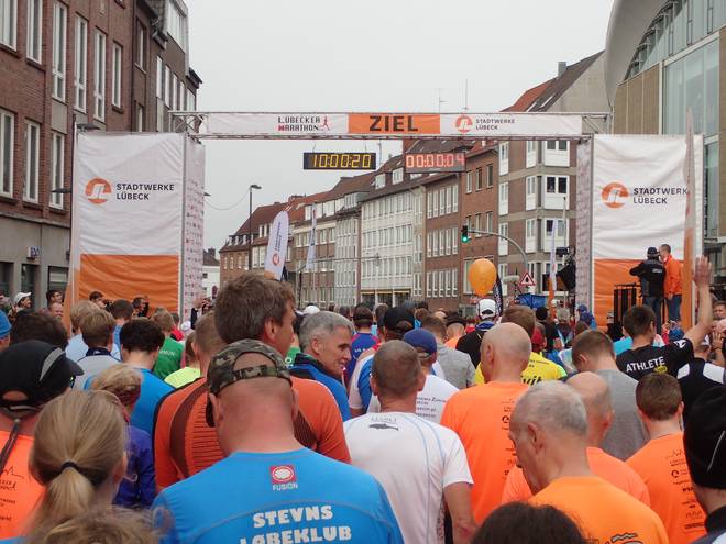 Kohlmarkt 9.57 Uhr 395 Marathon-Läufer waren hier am Start. Dazu 32 Starter für den Duo-Marathon. Ansonsten starteten später weitere Läufe über 2,1 und 4,2 Kilometer, 10 x 4,2 Kilometer-Staffel, 10 Kilometer (auch Walking) und Halbmarathon. Reichlich was los in Lübeck. |