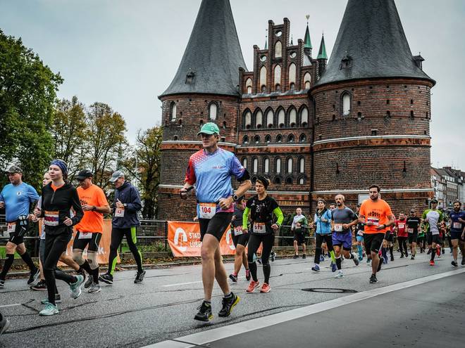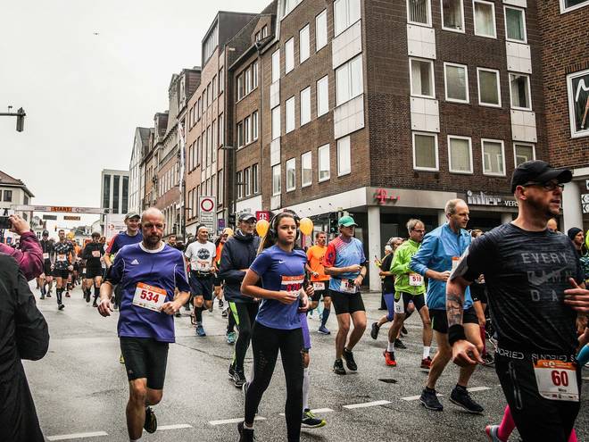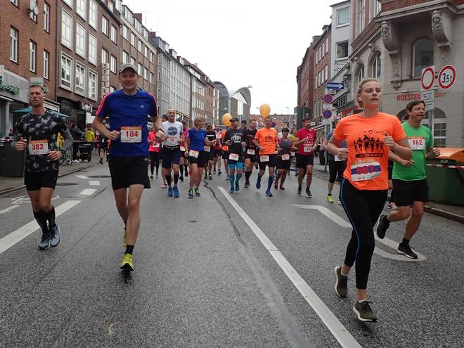 Holstenstraße 10.01 Uhr / Km 0,1 Und los ging es. Einmal nach Travemünde bis an die Ostsee und wieder zurück. Foto: Sportograf |