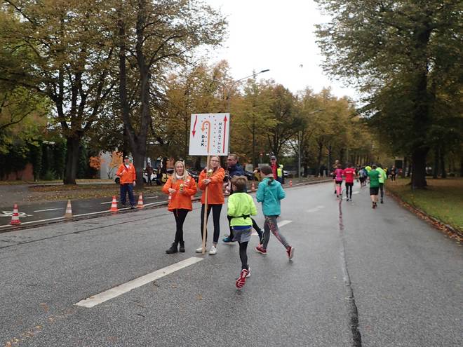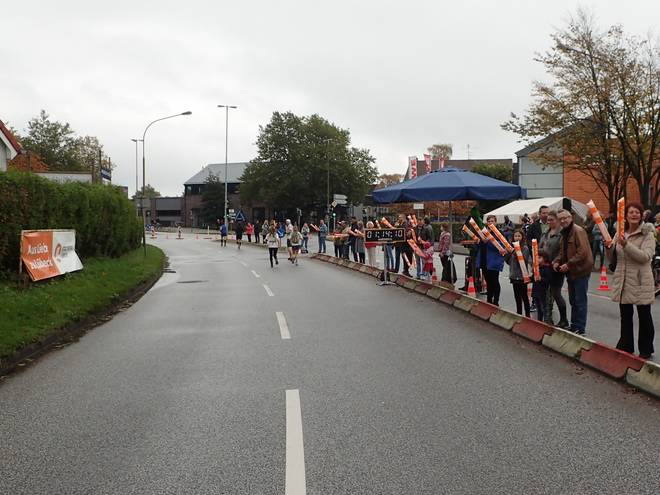 Waldhusener Weg 11.15 Uhr / Km 11,8 Gut etwas los an der Wende des Halbmarathons. Wobei die Spitze des Halbmarathons erst in circa 40 Minuten erwartet wurde. |