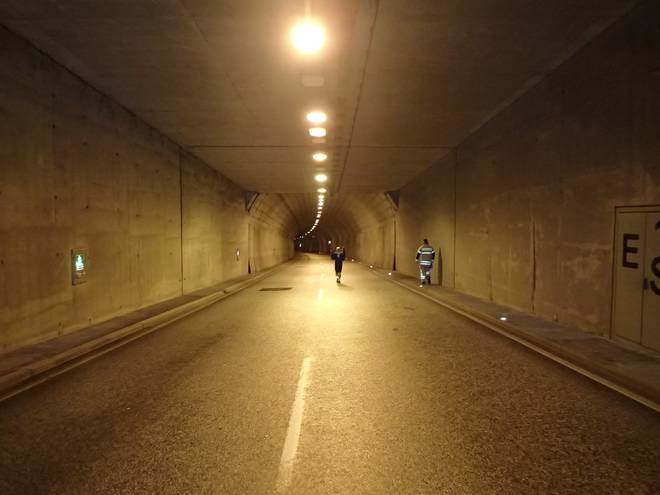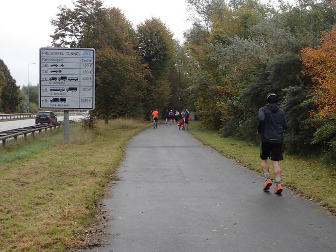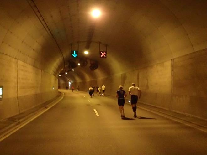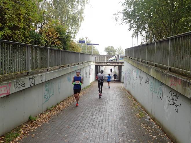 Herrentunnel Travemünder Landstraße / B 75 / B 104 10.53 Uhr / Km 8,4 Normalerweise darf man als Fußgänger nicht durch. Auch nicht als Läufer. |