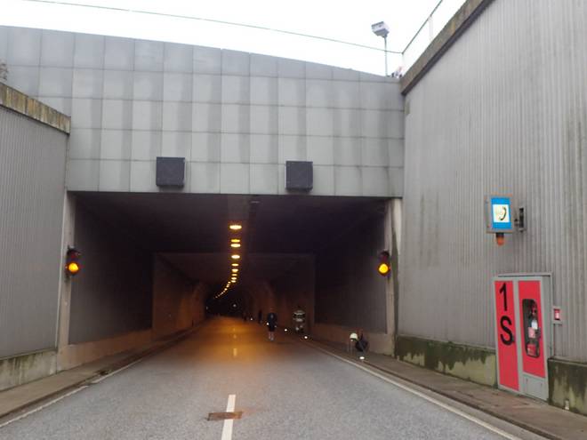 Herrentunnel Travemünder Landstraße / B 75 / B 104 10.56 Uhr / Km 8,8 Die Musik dröhnte durch den ganzen Tunnel. |
