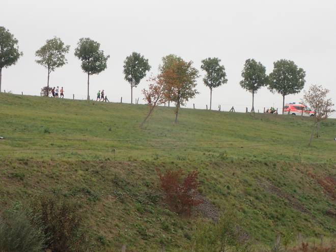 Ovendorfer Straße 11.41 Uhr / Km 15,8 Da auf den Deich mußten wir alle rauf. |