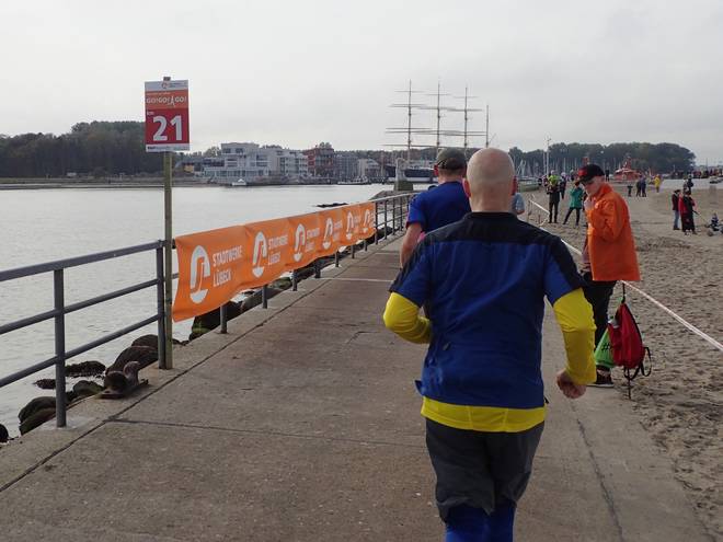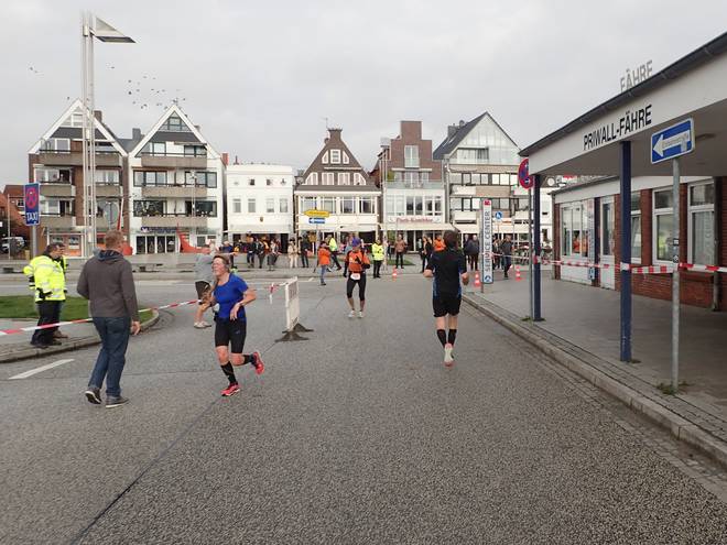 Nordermole 12.13 Uhr / Km 21,1 Halbmarathon nach 2:11:56 Stunden. Das war okay für meinen 4:30-Stunden-Plan. Zudem fühlten sich die Beine immer noch fit und locker an. Die zweite Hälfte durfte also gerne kommen. |