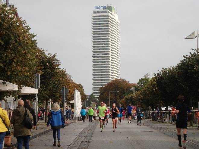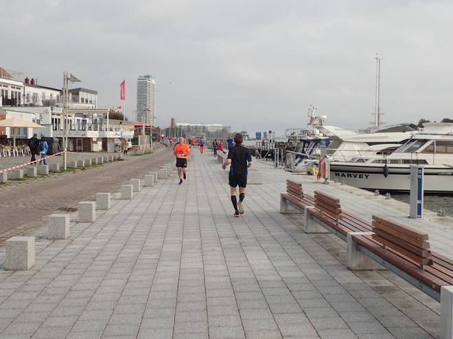 Vorderreihe 12.03 Uhr / Km 19,5 Die Einkaufspromenade von Travemünde war auch Teil der Streckenführung. Hier gab es gefühlt noch die meisten Zuschauer. |