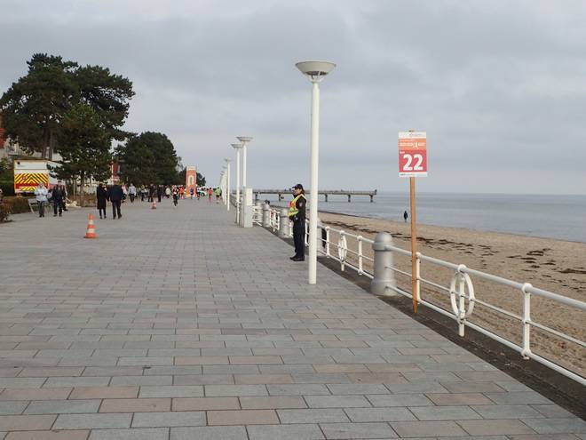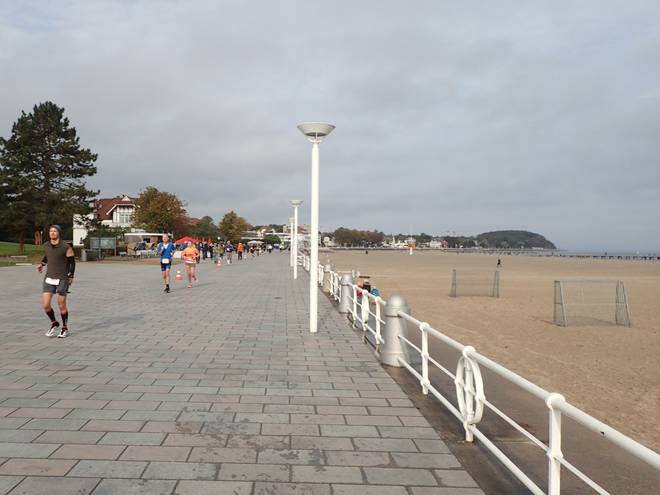 Strandpromenade 12.14 Uhr / Km 21,3 Obwohl der Halbmarathon geschafft war, lief ich immer noch auf dem Hinweg. |