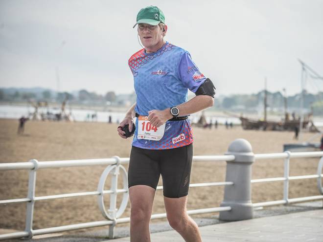Strandpromenade 12.14 Uhr / Km 21,3 Auf dem Rückweg ließen wir die Nordermole aus und auch das Holstentor. Foto: Sportograf |