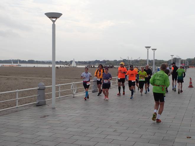 Strandpromenade 12.15 Uhr / Km 21,5 Somit war ich immer noch auf der Pendelstrecke und die mir entgegen kommenden Läufer lagen alle vor mir. |