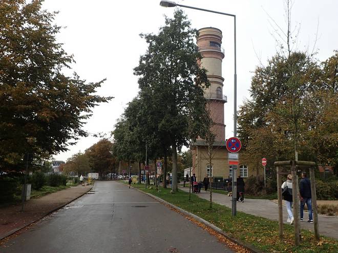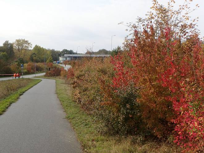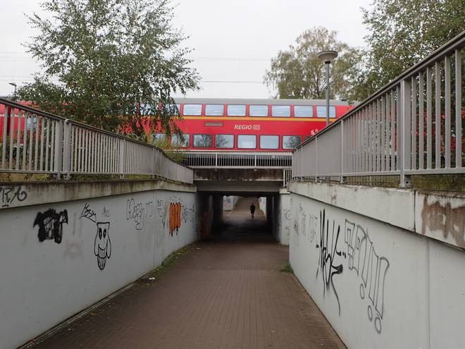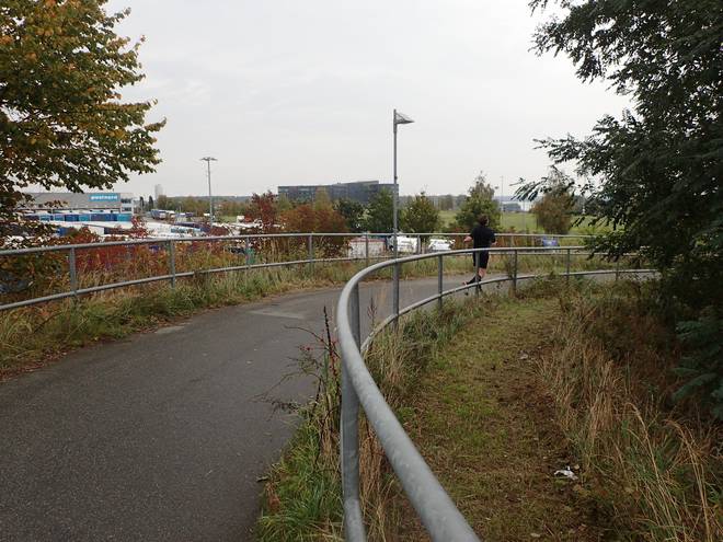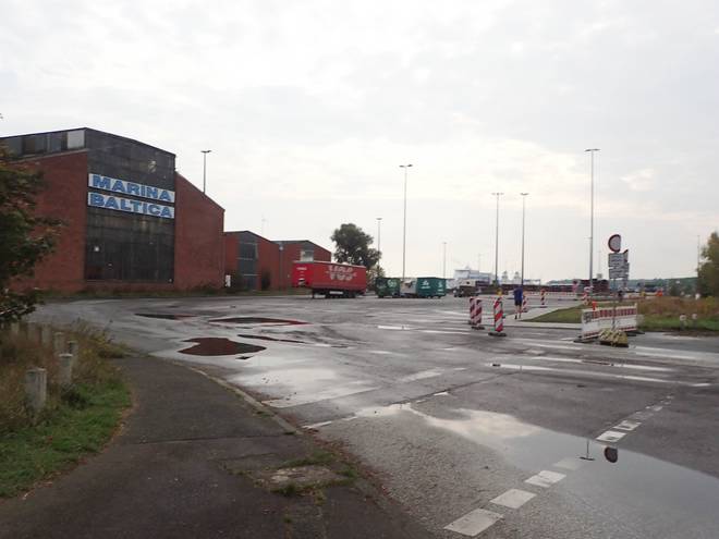 Skandinavienkai 12.39 Uhr / Km 25,4 Wieder unterquerten wir den Bahnhof mit dem irre langen Namen. Skurril: einen Zugang zum Skandinavienkai gibt es von hier aus nicht. |