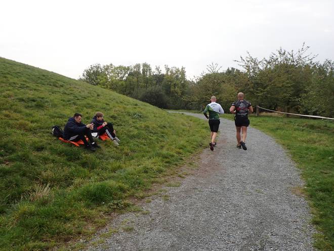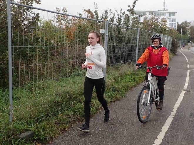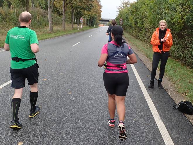 Auf dem Baggersand 12.35 Uhr / Km 24,7 Mit dem Gegenverkehr durch andere Läufer war nun Schluß. Lena Baron markierte hier das Ende des Feldes. Bis ins Ziel schaffte sie es leider nicht. |