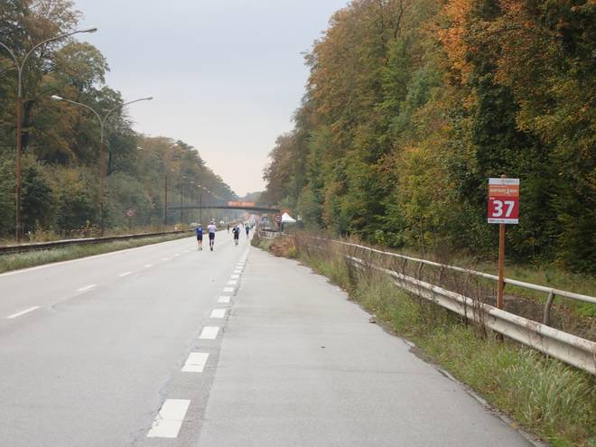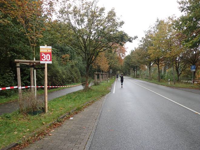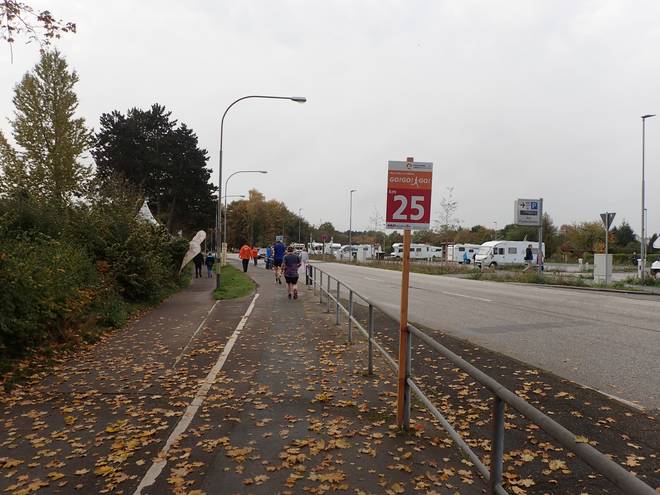Auf dem Baggersand Travemünder Landstraße 12.37 Uhr / Km 25,0 30:29 Minuten für die fünften fünf Kilometer. Also praktisch wie die Fünfer zuvor. |