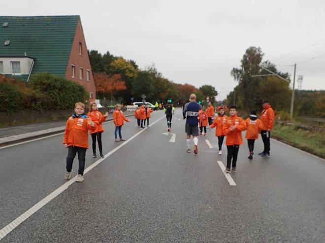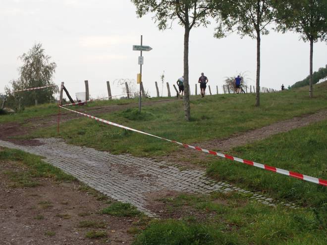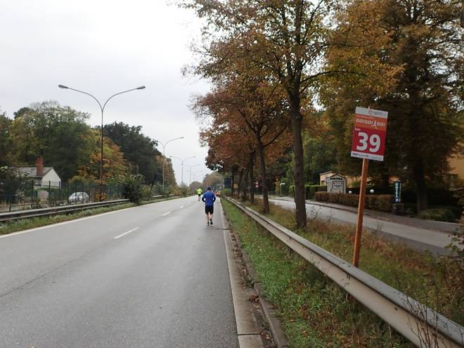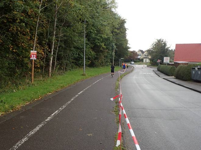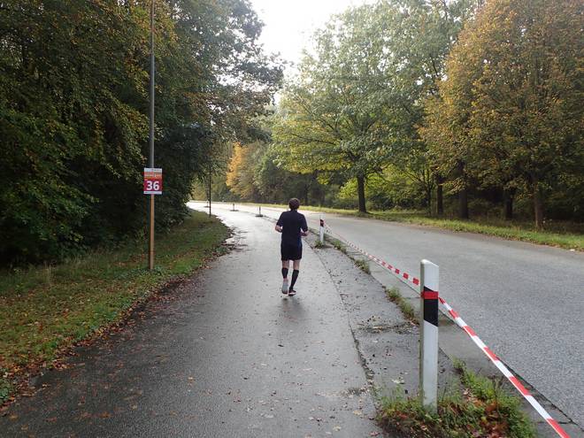 Waldhusener Weg 13.18 Uhr / Km 31,6 Wie auf dem Hinweg gab es auch hier eine Kontrollmatte. Wozu eigentlich? Am Ende schafften es auch Läufer in die Ergebnisliste, die nur eine oder sogar gar keine der insgesamt drei Kontrollmatten überlaufen hatten. |