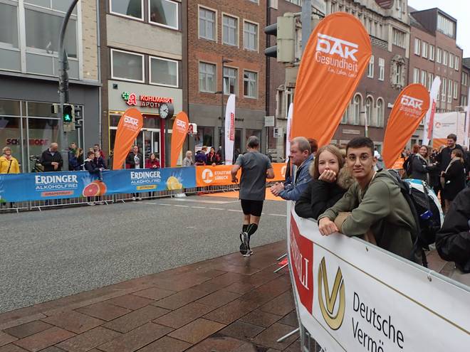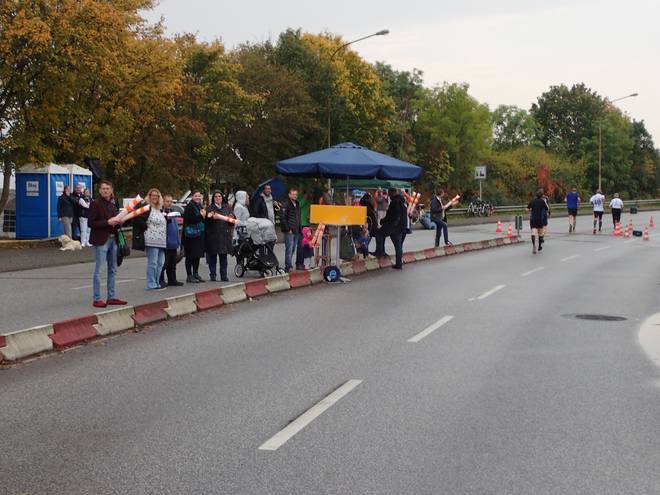 Vorderreihe 12.29 Uhr / Km 23,8 Es lief immer noch super. Aber dennoch nahm ich ein wenig Tempo raus. Ich hatte keine Lust, irgendwann komplett einzubrechen. Das hatte ich zuletzt zu oft erleben müssen. |
