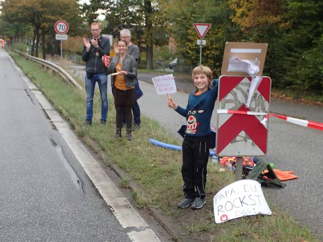 Travemünder Landstraße 12.58 Uhr / Km 28,3 Es ist ja nicht alles langweilig entlang der Strecke. So wie man sich vorab vor einigen langen Passagen gruselt, kann man sich vorab auch auf die schönen Sachen freuen. :-) |