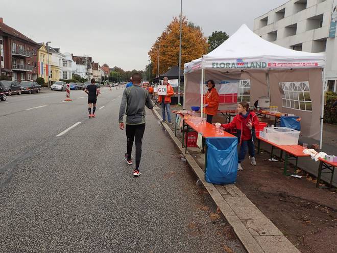 Strandpromenade 12.13 Uhr / Km 21,2 Der letzte Verpflegungsstand auf dem Hinweg würde schon bald der erste des Rückweges sein. |