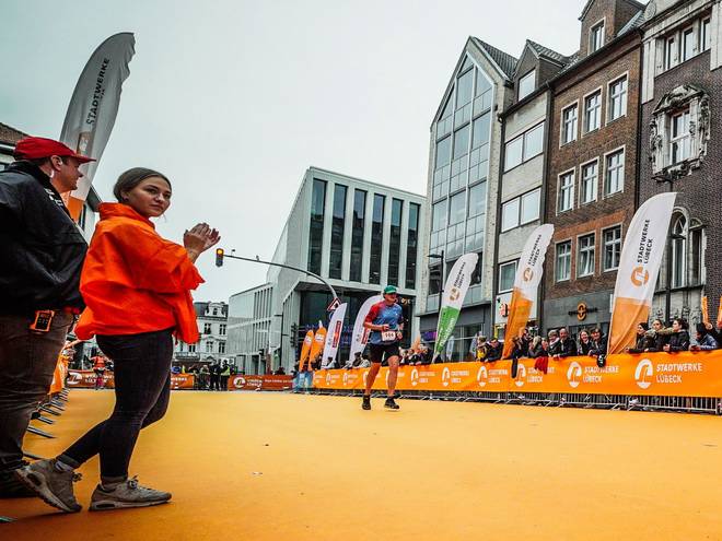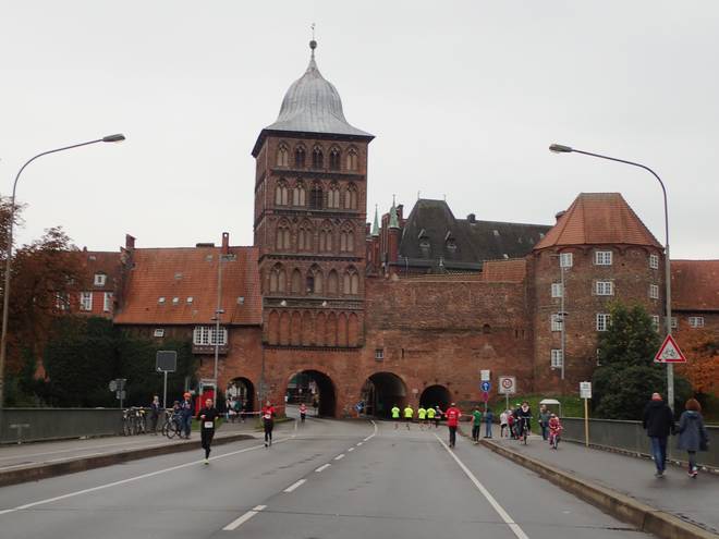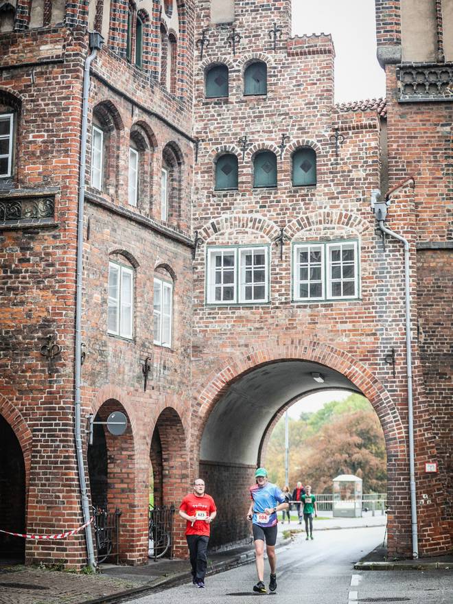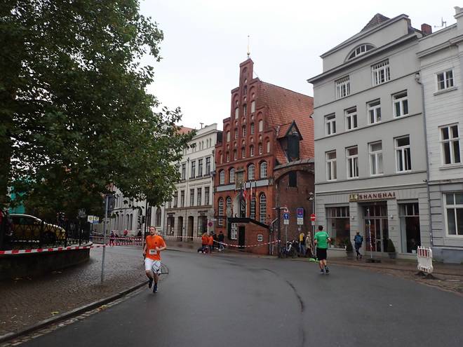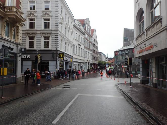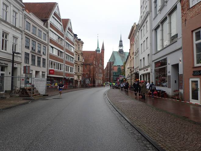 Große Burgstraße 14.14 Uhr / Km 41,2 Ich war jetzt zurück in der Lübecker Altstadt. Da der Umweg über das Holstentor fehlte, war es nur noch ein Kilometer bis ins Ziel. Foto: Sportograf |