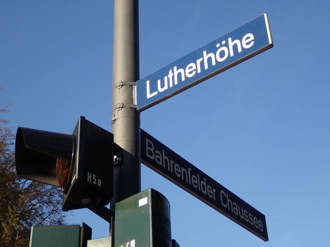 Lutherhöhe 9.29 Uhr Die Straße kannte ich schon. Bevor wegen der Überdachung der Autobahn A7 der Fußweg die parallele Laufstrecke abgerissen wurde, lief ich hier öfter mal entlang, wenn ich von der Arbeit nach Hause lief. |