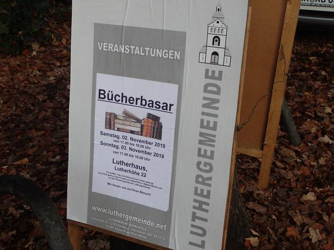 Lutherhöhe 9.28 Uhr Schon hier gab es jede Menge Luther. Der Start war an det Lutherkirche im Lutherpark in der Lutherhöhe. Alleine auf diesem Plakat tauchte das Wort "Luther" satte siebenmal (!!) auf. |