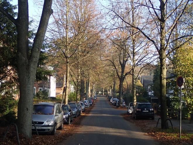 August-Kirch-Straße Altonaer Volkspark 10.10 Uhr / 1,4 Gelaufen wurde wieder eine eigentlich festgelegte Strecke. Wobei aber die GPS- und die Karten-Version geringfügige Abweichungen enthielten. Die Variante des Spitzentrios, durch den Park zu laufen, war nicht mit dabei. Da war es aber sicher schöner als hier auf der Straße. Außerdem war es kein schnellerer Weg. |
