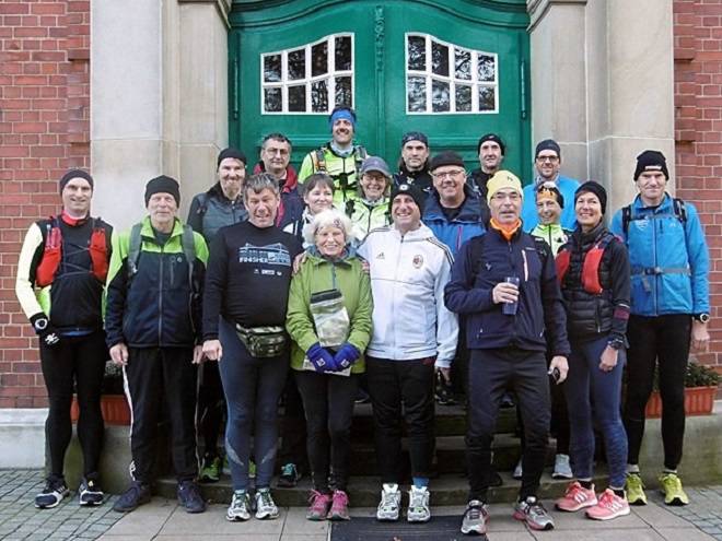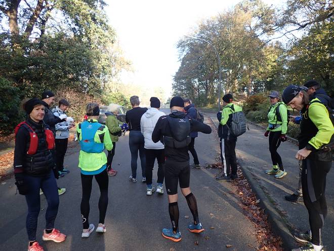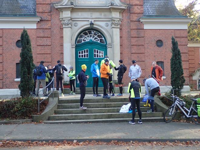 Lutherhöhe 9.59 Uhr Ein wenig ungewohnt. Selten stand bei einem Marathon von Christian das Feld schon vor der Startzeit bereit. Bei der Kälte war es aber ganz okay, pünktlich loszulaufen |