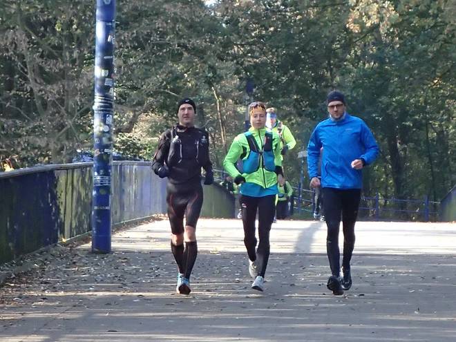 U-Bahn Hagenbecks Tierpark Koppelstraße 10.31 Uhr / 5,1 Diesen Abschnitt lief ich mit Roman zusammen. Mir dicht auf den Fersen folgten Frank und Francis. |
