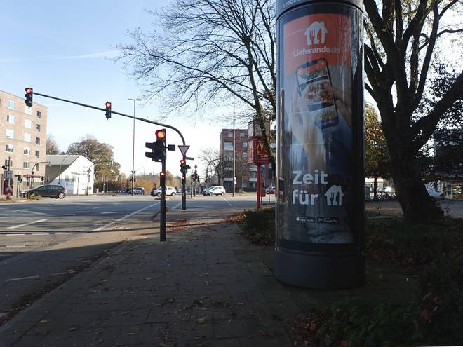 Fuhlsbüttler Straße 11.22 Uhr / 13,8 Wieder eine Hauptstraße zum Überqueren. Hier wartete ich tatsächlich mal auf Grün. |
