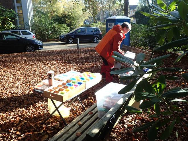Bei der Lutherbuche 10.39 Uhr / 6,5 Hier unter der Lutherbuche wartete Christian. Ein Dixi stand (zufällig) auch bereit. |