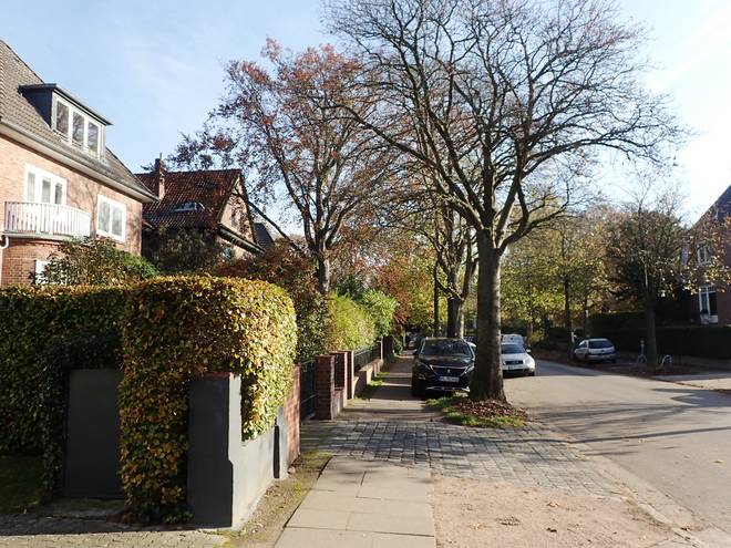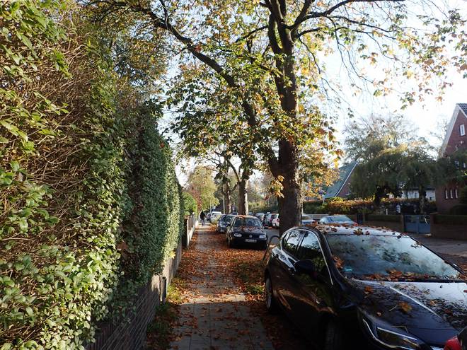 Emil-Andresen-Straße 10.35 Uhr / 5,8 Im Zick-Zack ging es durch Lokstedt. Ich lief vorne weg und meine Begleiter hinterher. Hätten die gewußt, wie wenig ich mich dort auskannte... |