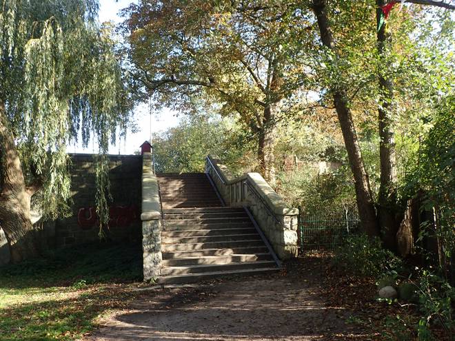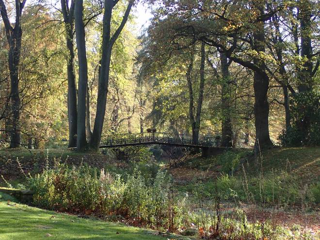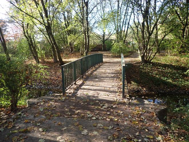 Friedhof Ohlsdorf Rosengarten 11.28 Uhr / 14,2 Eine sehr hübsche Brücke. Da liefen wir aber nicht drüber. |