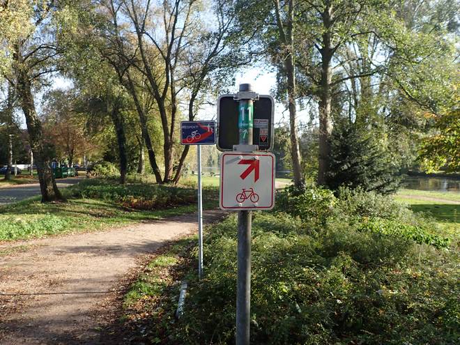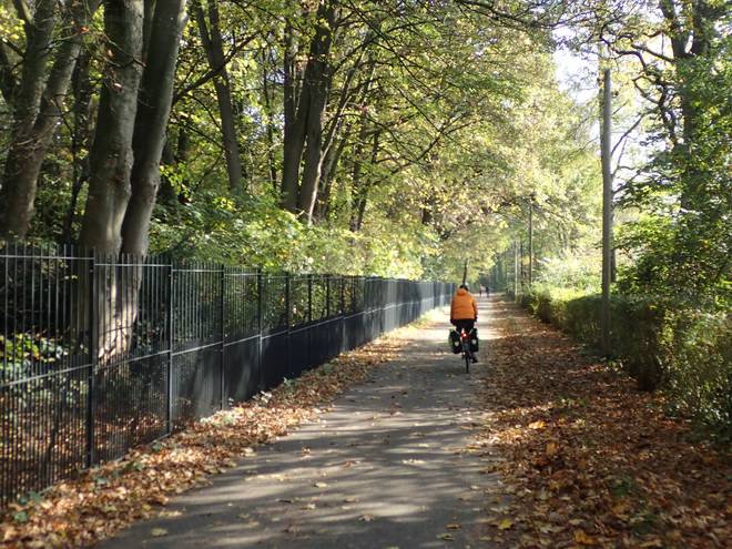 Brabandstraße 11.09 Uhr / 11,3 Ab hier ging es nun den Pfeilen des 2. Grünen Rings entlang. Das erleichterte die Strecken-Findung zusätzlich. Aber auf den Wegen hier war ich eh zu Hause. |