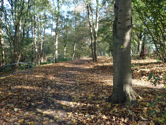 Bei der Lutherbuche 10.41 Uhr / 6,6 Ab hier folgte die Strecke nun erst einmal dem bekannten Kurs der vergangenen Jahre. Ich konnte also ohne GPS weiter laufen. |
