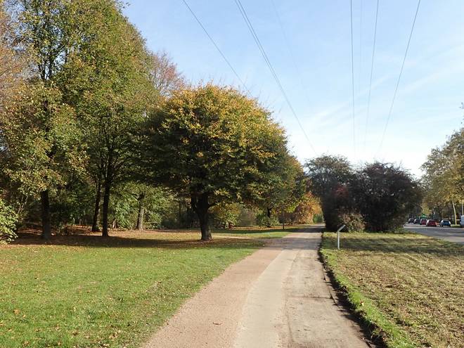 Trabrennbahn 12.15 Uhr / 21,4 Nach meiner Tempo-Bremse nach dem Verpflegungsstand Osterkirche hatte ich mein Tempo nach und nach wieder erhöht. Offenbar reichte mir eine kleine Verschnaufpause, um zu regenerieren. Dieses Tempo fühlte sich nun wieder gut an. |