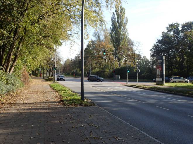 Nordmarkstraße 12.22 Uhr / 22,6 Bisher liefen wir hier links in Richtung Öjendorf weiter. Nun ging es geradeaus weiter in Richtung Wandsbek und Uhlenhorst. |