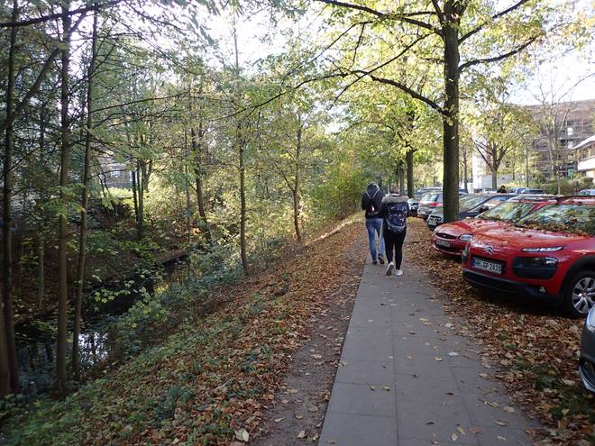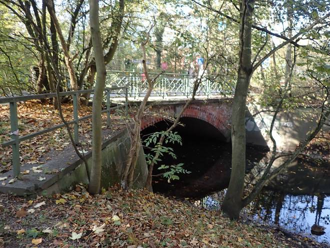 Mühlenteich 12.46 Uhr / 26,5 Am Mühlenteich entschied ich mich für die falsche Seite. Der führte zwar auch zur nächsten Querstraße, aber nur auf der rechten Seite gab es einen Tunnel. |