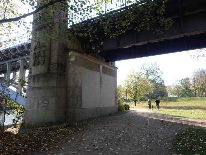 Wandse Eilbek Park 12.49 Uhr / 26,9 Hier verabschiedete sich dann Roman von mir. Ob ihm mein Tempo tatsächlich zu hoch war oder ob ihn die Klettereinlage abschreckte... ich weiß es nicht. |