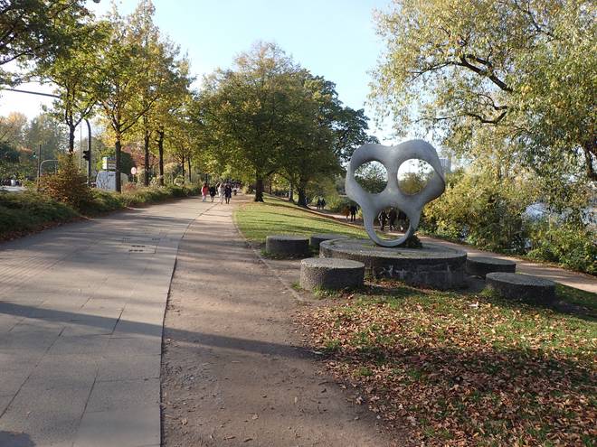 Kennedybrücke 13.17 Uhr / 31,3 "Rhythmus im Raum" heißt dieses Kunstwerk. Der Name ist doch naheliegend, oder? |