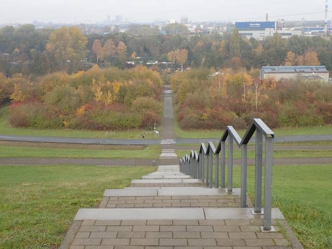 Energieberg Georgswerder 12.12 Uhr Bis nach oben sind es einige Stufen, die man bewältigen muß. Die Toiletten sind unter. Den Weg überlegt man sich lieber zweimal. |