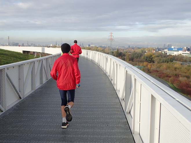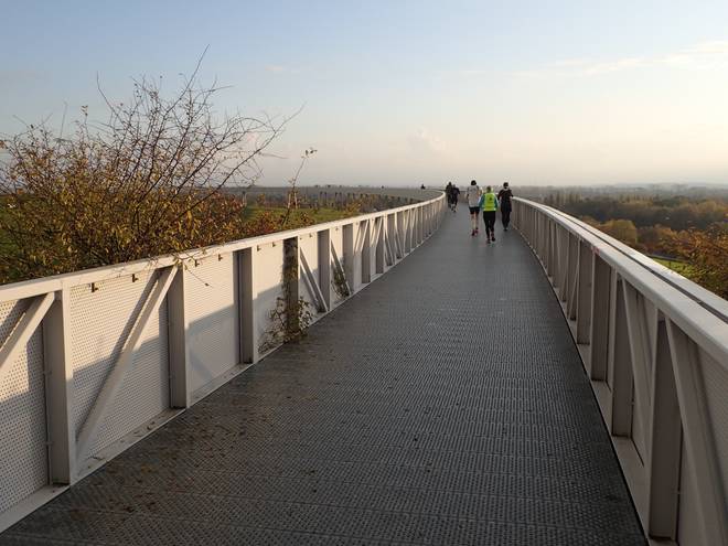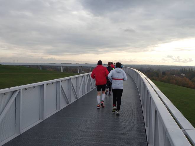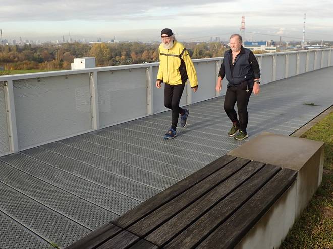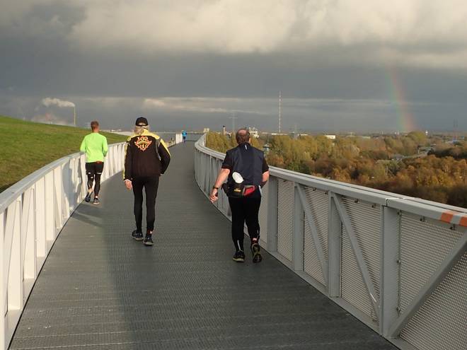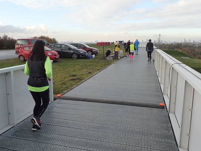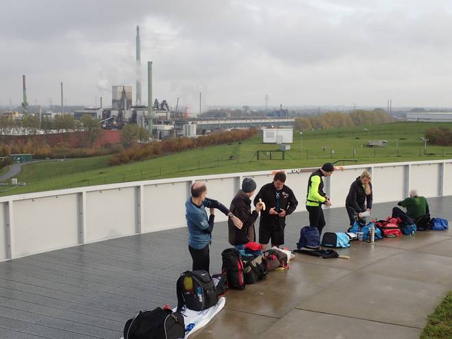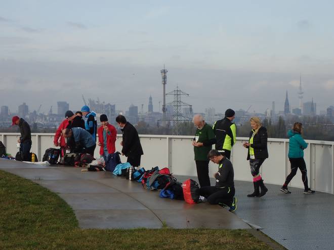 Energieberg Georgswerder 12.04 Der Horizontweg ist nur von April bis Oktober öffentlich zugänglich. Nur dank guter Beziehungen wird uns das Tor für den Marathons geöffnet. |